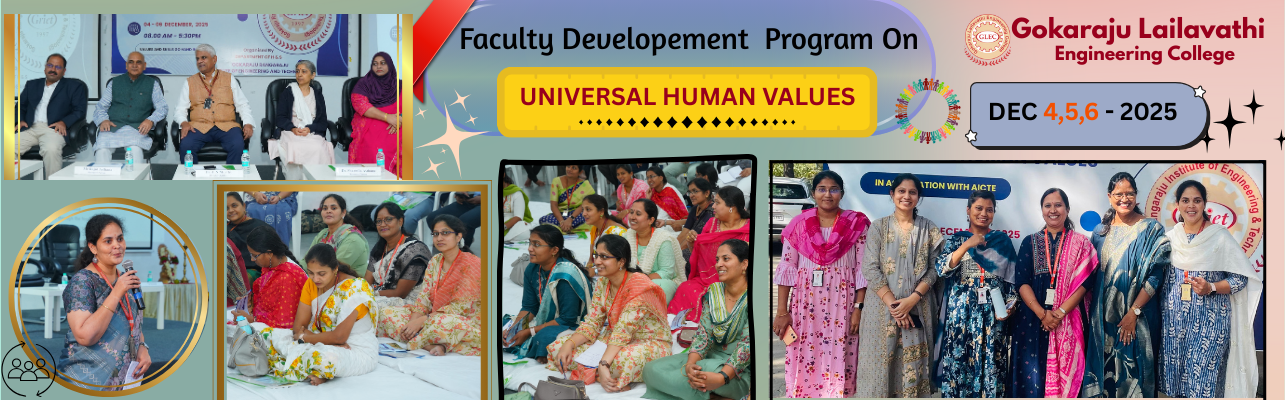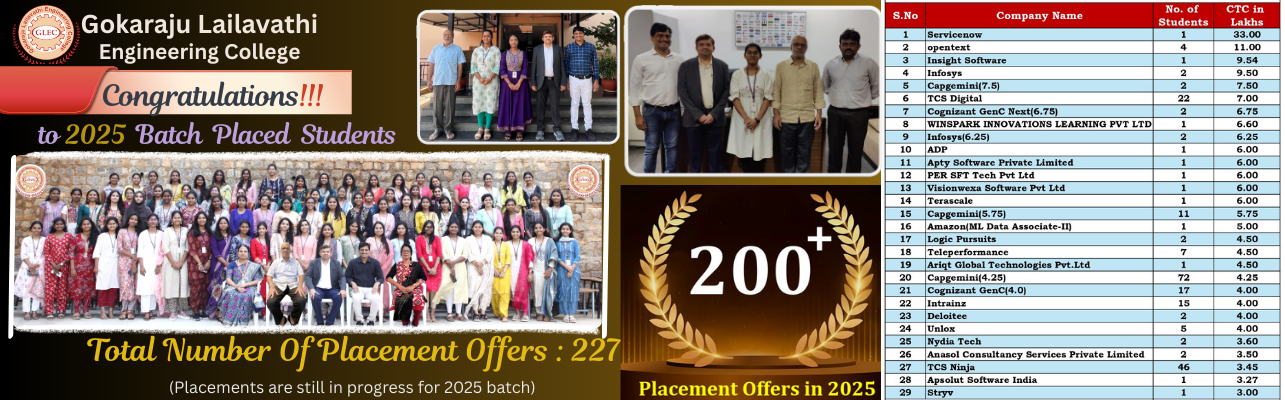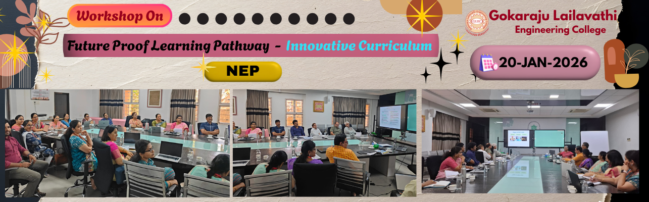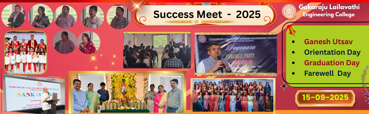 Gokaraju Lailavathi Engineering College (GLEC) was established in 2021 by Dr. G. Gangaraju as a self-financed institute under the aegis of Gokaraju Rangaraju Educational Society. Despite advancements in the education sector, challenges remain in fostering equal opportunities for all. Stereotypes often undermine capabilities in STEM fields, entrepreneurship, critical thinking, and problem-solving. At GLEC, we actively address these challenges by creating an inclusive learning environment. Beyond the university curriculum, we offer specialized programs designed to equip students with the skills needed to become globally competent professionals and future leaders.